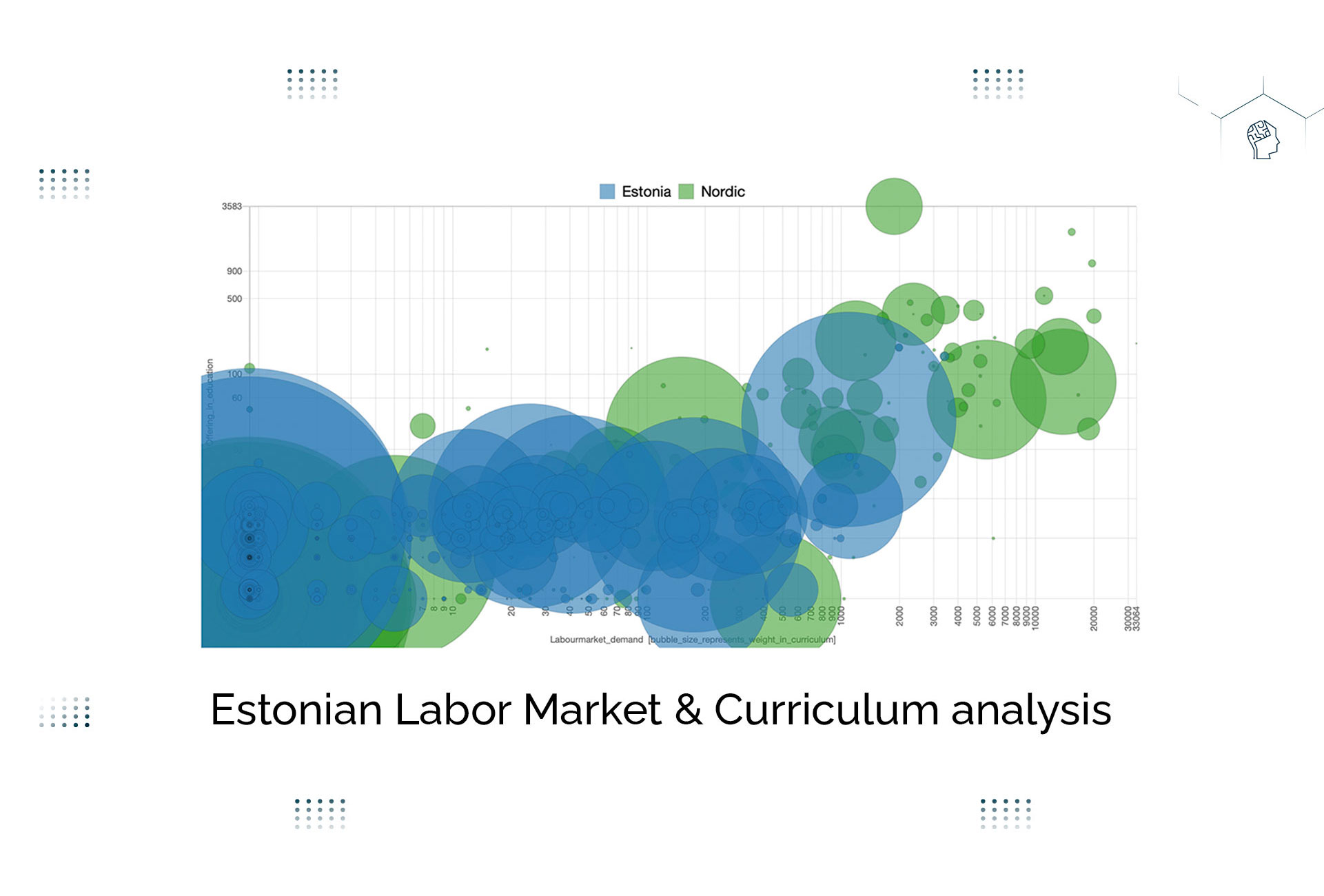 During 2020, OSKA and Headai worked together on a project to see how much additional value an AI-enabled tool could offer in detecting and analyzing the skills gap between labor market demand and chosen Estonian educational curriculums. First, Headai machine-read and analyzed Estonian job ads (10 876 pieces) and specific curriculum data (6 different vocational and university curriculums in total) on mechatronics. The results were visualized into skills maps which enabled understanding what are the skills that are needed now and in the near future but also, how the curriculum data matches the demand. OSKA and Headai teams kept multiple virtual workshops to analyze and discuss the founding. The results based on Big Data were iterated with the help of human work (both OSKE and Headai). AI teaching was focused on removing noise words and adding in specific curriculum-related words.